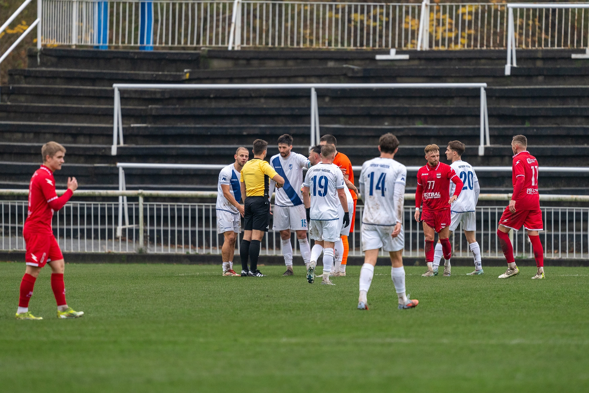Klíčový moment první půle přišel kolem 35. minuty. Jakub Heller byl po zákroku potrestán přímou červenou kartou, kdy se snažil zastavit rychlý brejk soupeře na hranici vápna. Valcíři tak museli zbytek zápasu zvládnout v početní nevýhodě.